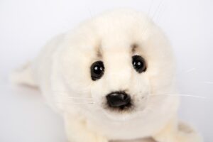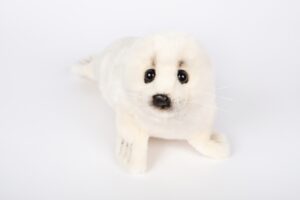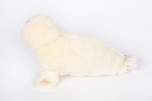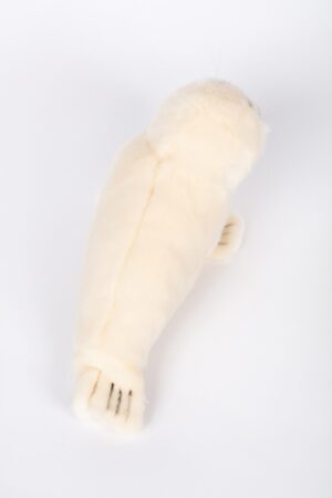 The White Seal Pup is a L28 cm x W12 cm x H13 cm (11"x4.7"x5.1"), plush soft toy. He has been sewn from a luxurious plush, to resemble that of his living counterpart. This white seal pup has a genuine realistic form and has been crafted from a dense, off-white close-pile, along with velvety-smooth flippers and tail. He has glossy black safety eyes, that sit upon a black felt for emphasis, with a black nose and acrylic whiskers, whilst hand applied painting and shading, has been used to define his captivating face, flippers and tail. All this and he is still wonderfully soft and cuddly, with a delightfully tactile touch.