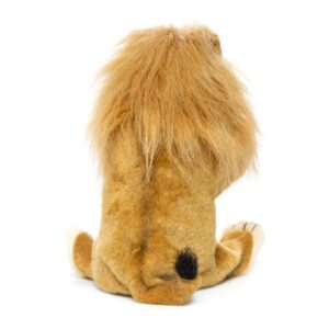 Lion is a L22.7 cm x W19.8 cm x H27.7 cm (L8.97″xW7.8″xH10.92″) non-jointed, full-bodied plush toy hand puppet. He is the regal king he is intended to be, with a delightfully tactile touch. All he needs is to be activated. A pocket in his rear allows for a hand to reach in all the way up to his head and front legs to mobilize movement and animate. The lion himself has a genuine, realistic form and is sewn from a mix of luxurious plush. Primarily a mottled auburn, with white accents, plus grey for the soles of his shaped paws, with a fluffy long-pile auburn for his majestic mane and tail tip. He has velvety ears, with two-tone brown safety eyes and a pink feline nose that matches the tongue of his open-mouthed expression, standing out against the black, whilst hand shading has been used to define and shape his glorious face and big paws. Remember to practice your mighty roar!
