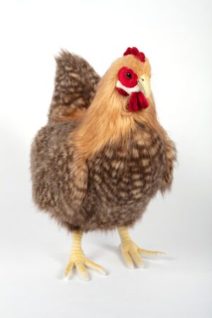 This life-like Hen is a 31x20x35cm soft toy made by the creators of realism – Hansa. She is made from a wonderful tactile mottled plush giving the illusion of feathers. She has a velvety smooth beak and legs with internal supports. Fine airbrushed details have been applied by hand creating definition and shading.