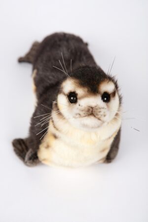 The Monk Seal Pup is a L30 cm x W13 cm x H14 cm (11.8"x5.1"x5.5"), plush soft toy. He has been sewn from a mix of luxurious plush, to resemble that of his living counterpart. This monk seal pup has a genuine realistic form and has been crafted from a dense, peat brown close-pile, along with an off-white underside and face, plus velvety-smooth flippers and tail. He has glossy black safety eyes, with hand stitched features and acrylic whiskers, whilst hand applied painting and shading, has been used to define his captivating face and mottled underside. All this and he is still wonderfully soft and cuddly, with a delightfully tactile touch.