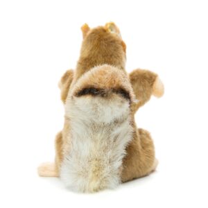 Red Squirrel is a L34.7 cm x W17.7 cm x H27.9 cm (L13.7"xW7"xH11") non-jointed, full-bodied plush toy hand puppet. He looks somewhat shy, but is friendly with a delightfully tactile touch. All he needs is to be activated. A pocket in his rear allows for a hand to reach in all the way up to his head and front legs to mobilize movement and animate. The red squirrel himself has a genuine, realistic form and is sewn from a mix of luxurious plush. Primarily a dense dark-cinnamon, with a dense white underside and a light caramel for his shaped paws, head and ears, alongside mid auburn and dilute mocha. His magical tail is also in many parts, a semi-fluffy white-tipped auburn, with a black stripe, separating the off-white underside, whilst his glossy black safety eyes and clear acrylic whiskers sit above his hand stitched nose and mouth, which has been delicately hand painted in order to create shape and definition. The same treatment has been applied to his paws too. Help him find where he buried his cache!