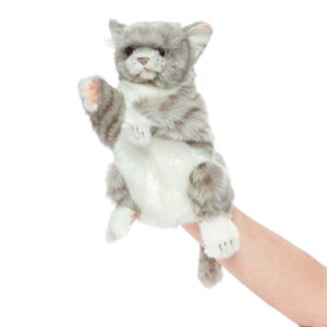 This appealing Hansa Blue Tabby Cat Hand Puppet, would like you to stroke his lovely coat. Ideal for interactive play, hand puppets can be story tellers, adventurous friends, confidantes or an educational tool and more. It's now up to the guiding puppeteer, that means you, to work your magic.
