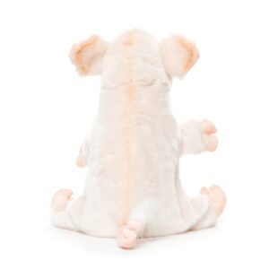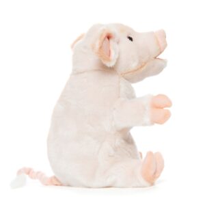 Pig is a L26.7 cm x W20.8 cm x H23.7 cm (L10.53"xW8.19"xH9.36") non-jointed, full-bodied plush toy hand puppet. He has a cheeky character, with a delightfully tactile touch. All he needs is to be activated. A pocket in his rear allows for a hand to reach in all the way up to his head and front legs to mobilize movement and animate. The pig himself has a genuine, realistic form and is sewn from a luxurious plush. A dense semi-fluffy and pale pink short-pile, with a velvety-touch, slightly darker hue for his inner ears, snout/mouth, shaped trotters and curly tail. He has finger-twirling tulip ears and an open-mouthed expression, with glossy two-tone pink safety eyes, whilst delicate hand applied shading has been used to define and shape his ears, trotters, head, face and mouth, really giving him form. Oink Oink!