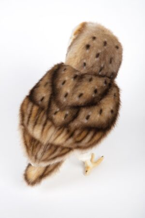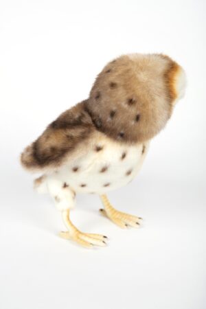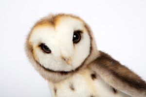 The Barn Owl is a L23 cm x W15 cm x H27 cm (9"x5.9"x10.6"), plush soft toy. He has been sewn from a mix of luxurious plush, to resemble that of his living counterpart. This barn owl has a genuine realistic form and has been crafted from a dense and semi-fluffy, auburn-tipped white mid-pile, with white, plus velvety-smooth accents for his beak and lower limbs. No area has gone untouched, with a lot of time and talent being spent, into making his fabulous marked plumage. Hand applied colour shading and painting has been activated to define, shape and blend, his feathered coat including, painstakingly drawn details. Let's not forget that being an owl, he of course has large and round, two-tone brown safety eyes, plus that all important turn able head. All this and he is still wonderfully soft and cuddly, with a delightfully tactile touch.