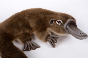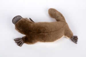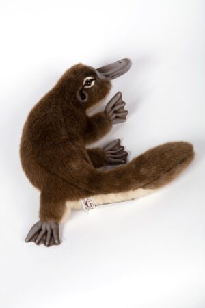 The Platypus is a L38 cm x W31 cm x H10 cm (14.9"x12.2"x3.9"), plush soft toy. He has been sewn from a mix of luxurious plush, to resemble that of his living counterpart. This platypus has a genuine realistic form and has been crafted from a dense, chestnut-tipped grey, with woven accents for his magnificent bill and webbed feet. He has glossy two-tone brown safety eyes, enhanced with white, whilst hand applied painting and shading, has been used to magnificently define his eyes, fabulous bill, webbed feet and colour his paddle (tail). All this and he is still wonderfully soft and cuddly, with a delightfully tactile touch.