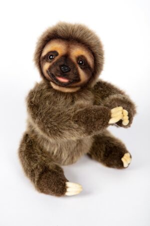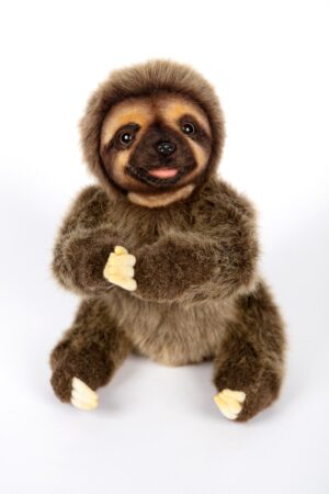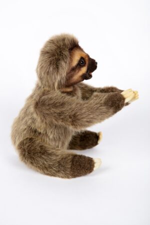 The Silver Sloth is a L16 cm x W19 cm x H22 cm, (7"x7"x7.8"), 5-way jointed, plush soft toy. He has been sewn from a mix of luxurious plush, to resemble that of his living counterpart. This silver sloth has a genuine realistic form and has been crafted from a dense and semi-fluffy, caramel-tipped, earth brown mid-pile, with some tonal close-pile accents making up his face, not forgetting his velvety-smooth claws. He has glossy, two-tone brown safety eyes, that shine above his moulded black nose and open-mouthed expression, exposing his pink tongue, whilst delicately applied hand painting and shading, for shape and detail, has bought life to his visage and sharpness to his long claws. All of this and he is wonderfully soft and cuddly, with a delightfully tactile touch.