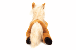 He has been made using a gorgeously soft chestnut/tan plush with a long cream plush mane and tail, his hooves are a soft black plush. He has sweet tulip shaped ears, glossy safety eyes and his muzzle features embroidered nostrils. Whether just for cuddles or going for gallops he is the ideal companion.
