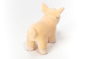 Pig is a 20 cm / 7.8", non-jointed, plush toy. He has been sewn from a luxuriously woven peachy-pink plush, with velvety pink accents for the inners of his tulip ears, detailed snout, shape defined trotters and curly tail, whilst glossy black safety eyes, embroidery detailing and hand applied colour shading, bring shape and definition, as well as blush to his cheeks. To finish, that lovable, snug-able feel completes him.