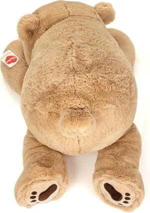 Snuggle up to the gorgeous Brownie plush teddy bear, crafted by the renowned Teddy Hermann. Measuring at an impressive 55cm from head to toe, this lying down teddy bear is distinguished by his uniquely stitched dark brown paw print pads set in soft beige plush, which beautifully complement his beige plush body. Designed for comfort and companionship, his ultra-soft texture makes him perfect for cuddles at bedtime or throughout the day. Thoughtful details like his black safety eyes, big velvety black nose, and gentle, cheerful smile highlight the expert craftsmanship and signature style of Teddy Hermann.