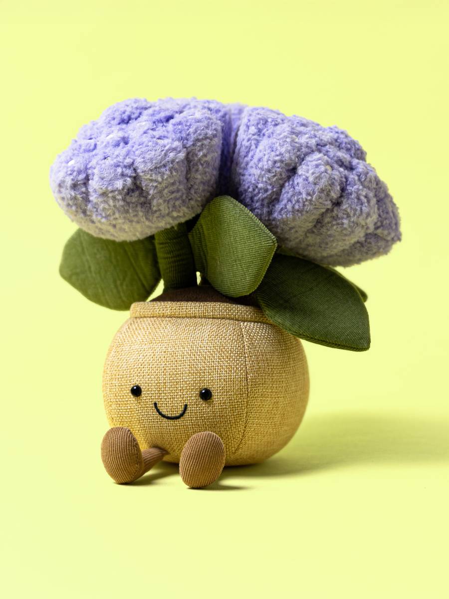 Blooming with charm and soft colour, the Amuseables Hydrangea Plant by Jellycat brings a cheerful floral touch to any space—no watering needed. With its plush cluster of purple petals and vibrant green leaves, this delightful character adds a fresh and playful feel to shelves, desks, or cosy corners.