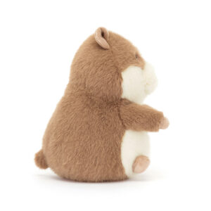 Gordy is a 21cm 14cm soft toy guinea pig made of super soft fudge brown and cream plush with velvety soft folded ears and tiny paws. He has shiny black safety eyes and a cute little pale pink nose. Part bean filled for that lovely squidgy feel and weight.