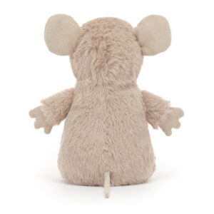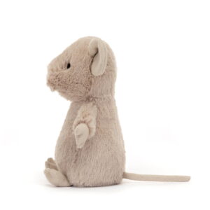 Nippit Mouse is a 13cm x 7cm soft toy made of super soft mushroom coloured plush with taupe suedey material for his saucer ears, paws and long tail. His shiny black safety eyes peep out above his soft pink suedey nose and embroidered mouth. Part bean filled for that lovely cuddly feel and weight.