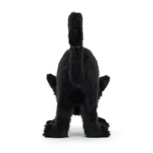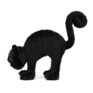 Could Spookipaws Cat be lucky for you, even though he looks a bit scared of something, he is a 20cm x 25cm soft toy made by Jellycat.Spookipaws is made from high-quality soft black plush with soft black felt claws, this cute kitten has shiny black and green safety eyes and a cutest little pink nose. He is filled with polyester fibres and PE beans. He will make a fun addition at Halloween.Wash at 30c.