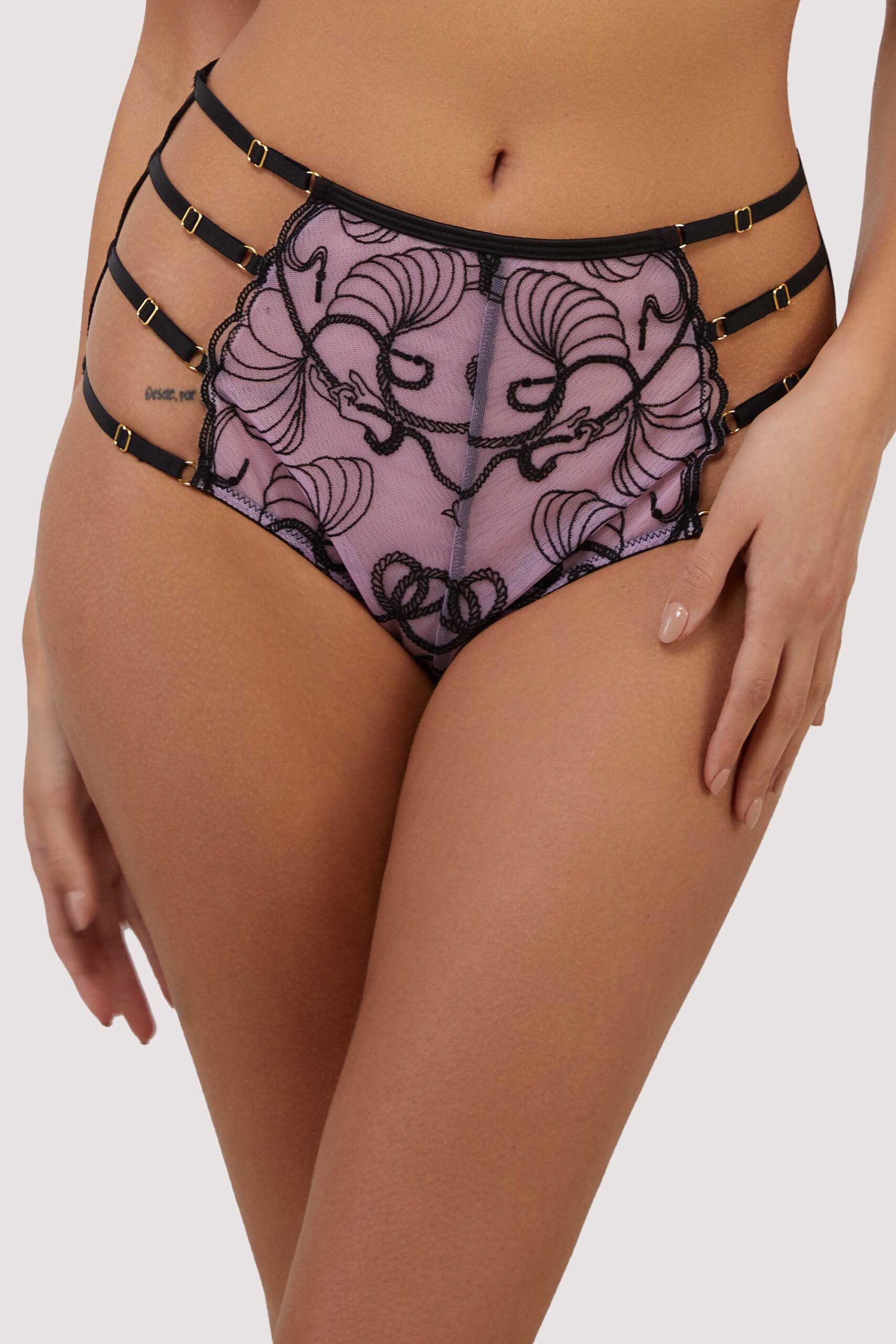 Jessie Pink And Black Whip Embroidery High Waist Brief | UK 10 | Playful Promises