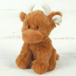 Quirky, charming, loveable and oh-so very soft. It's the reddish-brown Highland Cow made with a fluffy mid pile plush and delicate short pile cream used for his nose and horns.