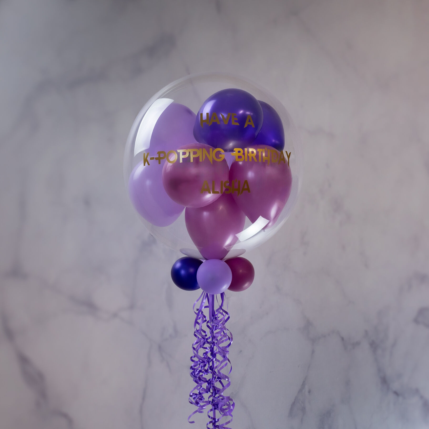 Celebrate a special birthday with this personalised K-Pop Demon Hunters inspired balloon featuring a K-Pop font and a Rumi colour set. This 20″ spherical personalised bubble balloon arrives inflated with matching ribbons and weight along with your choice of K-Pop Demon Hunter font style text, delivered on a day of your choosing. Simply enter your personalisation text and choose your colour for the font and we will do the rest! Float time of 7-10 days, keep in a warm space away from sharp objects and heat sources.