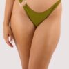 Kalahari Khaki High Shine Bikini Top With Gold Ring | UK 18D/DD | Wolf & Whistle