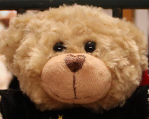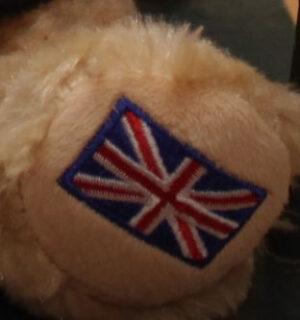 Hugs from Taunton is named so, as that's where you will find him, at World of Bears, Taunton in Somerset – a popular place to visit. He is 18cm tall and in a position. He has been sewn from a tufted blonde plush with velvety smooth accents. He has glossy eyes with hand stitched brown facial features and an embroidered union jack upon his paw, plush beans in his 'tush' for that satisfying, squidgy soft feel. Hugs wears a black smooth plush top with Hugs From Taunton and star detailing embroidered in golden thread.