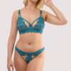 Step into timeless seduction with the ‘Lillian Black Floral Embroidery Set’ — crafted to sculpt, support and captivate. Exquisite floral embroidery blooms across sheer mesh panels of the basque, tracing the curves of the body, while underwired cups lift and define the bust. The structured waist panel cinches the silhouette, and satin bows accent the plunge neckline, adding an irresistibly feminine touch. Finished with adjustable shoulder straps and a multi hook-and-eye fastening back for a secure, tailored fit. The coordinating brief mirrors the same delicate embroidery and sheer mesh detailing, offering a flattering silhouette that completes this beautifully sculpted, captivating set.