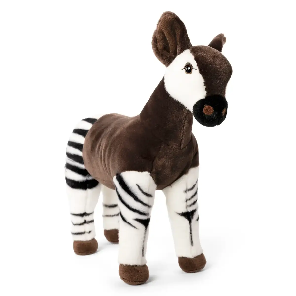 Unique and full of wonder, the Okapi Plush by Living Nature brings one of nature’s most fascinating animals to life. With its rich brown coat, striking zebra-like striped legs, and gentle expression, this beautifully detailed soft toy captures the rare charm of the okapi.