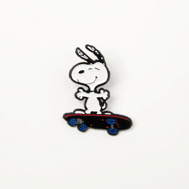 Add a cool, laid-back vibe to your look with the Lifestyle Skateboard Enamel Pin from the Peanuts X Magpie collection by Magpie. Featuring a fun skateboard-inspired design influenced by the beloved Peanuts characters, this playful accessory captures a sense of freedom, adventure, and everyday fun. It’s perfect for adding personality to your jacket, bag, or lanyard.