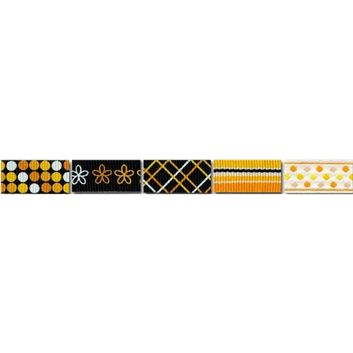 Maya Rd City Ribbon Set – Charleston from World of Craft. City Ribbons. Charleston – This is a set of 5 ribbons with different patterns on each ribbon all have a yellow theme.