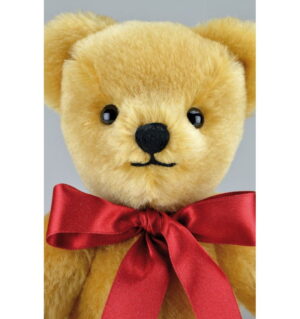 This beautiful iconic teddy bear is approx 10 inch, fully jointed soft toy made by the traditional English bear makers, Merrythought. He is made from a soft golden mohair with contrasting velveteen paw pads. Surface wipeable only.