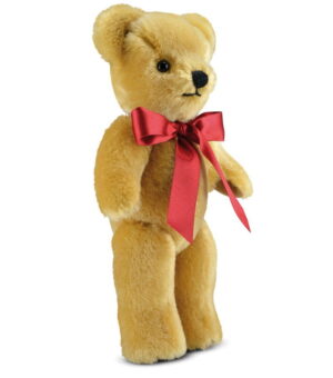 Originally Merrythought teddy bears had glass eyes (from 1930 onwards) but our bears are now made with plastic safety eyes. Our teddy bears are safety tested and suitable for children although it is advised that any accessories (such as labels, ribbons, clothing) are removed before giving to small children.