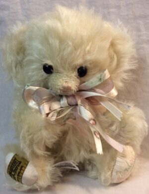 This Pot Pouree Set is made up of 6 pastel coloured Mohair Cheeky Bears, all fully jointed and with a standing height of 24cm/ 9.5". They have their floral scent names embroidered onto their satin paws and all bears apart from Lavender have bells in their ears that make a light jingling noise.