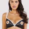 Our classic Miranda is back.. Echoing the kinky French maid, the Miranda Bra is not to be dusted off lightly! Sheer black mesh is edged with white lace in this unlined, unpadded bra. What we like to think of as the reverse nipple pastie, this bra features everything but the nipples! Inspired by a retro design seen on Bettie Page, the bra has thick elastic straps with white lace overlay, and finished off with a little white centre bow. Match with the Miranda Suspender Belt and choice of Thong, Brief or Ouvert Brief for the full look.