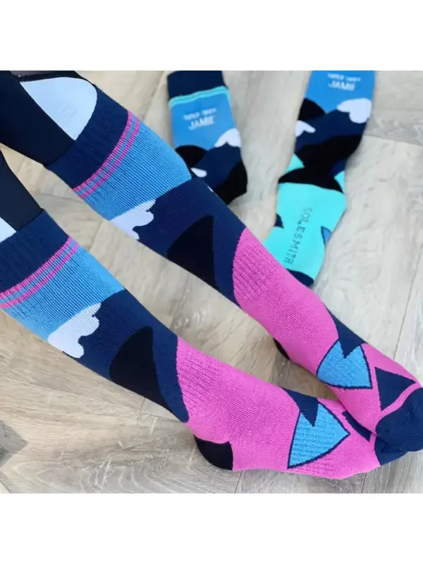 Mountain Patterned Technical Ski Socks for men offer comfort and performance, keeping feet warm with a stylish mountain design. Perfect for the slopes.