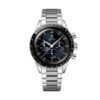 The Speedmaster Moonwatch is one of the world’s most iconic timepieces. Having been a part of all six moon landings, the legendary chronograph is an impressive representation of the brand’s adventurous pioneering spirit.Presented on a black micro-perforated leather strap with red and white stitching, this 42 mm Moonwatch in stainless steel features sapphire crystal glass on the front as well as on the caseback. Inspired by the 4th generation Speedmaster style worn on the moon, it also includes an asymmetrical case, a white lacquered step dial with applied OMEGA logo and indexes, Moonwatch style hands, and the famous dot over 90 on the black anodised aluminium bezel ring.The watch is driven by the OMEGA Co-Axial Master Chronometer Calibre 3861, which powers the small seconds sub-dial, 30-minute recorder and 12-hour recorder, along with the central chronograph function.
