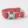 Equipped with sturdy materials, including a robust plastic buckle and a secure D-ring for easy lead attachment, this collar ensures your dog’s safety while adding a touch of sophistication to their look. The geometric pattern offers a playful yet elegant aesthetic, suitable for any occasion, whether it’s a casual stroll in the park or a special outing.