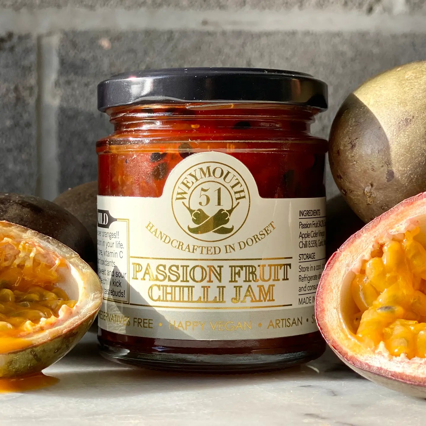 Passion Fruit Vegan Mild Chilli Jam offers a delicious blend of natural sweetness, hint of sour, and chili kick. Perfect with cheese, meats, or on toast.