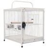Constructed in sophisticated charcoal grey, the Pavilion features reinforced wire architecture and multiple access doors for convenient interaction. The generous interior accommodates elaborate perch networks, rope bridges, ladders, swings, and extensive toy arrays, creating a richly stimulating environment that promotes natural behaviours and optimal wellbeing. Included are 2 natural wooden perches, 2 stainless steel cups (4") and 2 stainless steel cups (5"), providing both comfort and practical feeding options.