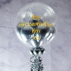 Help a couple celebrate their silver 25th wedding anniversary in style with this shiny and lavishly designed bubble balloon, with a choice of silver-themed fill options. The perfect balloon decoration or gift, this personalised balloon can be sent direct to the recipients or used in any luxurious party venue when celebrating with family and friends. Our inflated 20″ clear balloon is filled with your choice – feathers, small balloons, confetti, or ‘powderfetti’ (smaller square confetti). On the outside we add finishing touches including a collar of balloons, ribbons and a weight. With an average float time of 7 – 10 days, our balloons are a lasting reminder of the special day.