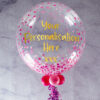 This beautiful confetti print balloon is a new style here at Party On Balloons, and we think it looks fantastic! A beautiful way to send any personalised message to a loved one, ready to magically float from the box upon opening, the confetti print really is stunning. We take the 24″ bubble, add balloons and a matching tail to the bottom, along with the personalisation of your choice for the front. We then inflate, box and deliver on a day of your choosing during the checkout process. This is a long lasting balloon, and you can expect 2-3 weeks of float time.