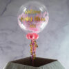 This confetti-filled bubble balloon is the perfect gift for Mother’s Day, with a range of vibrant confetti colours to choose from. We fill the 20″ clear outer balloon with your chosen confetti inside and then add your own personalised message to the outside as a unique finishing touch to this decoration. To complete the look we add four smaller balloons to the base, along with matching ribbons and a weight, so the balloon is ready to float out of the box. Everything about this balloon can be personal to your Mum, and it will last approximately 2 – 3 weeks from the day we inflate it.