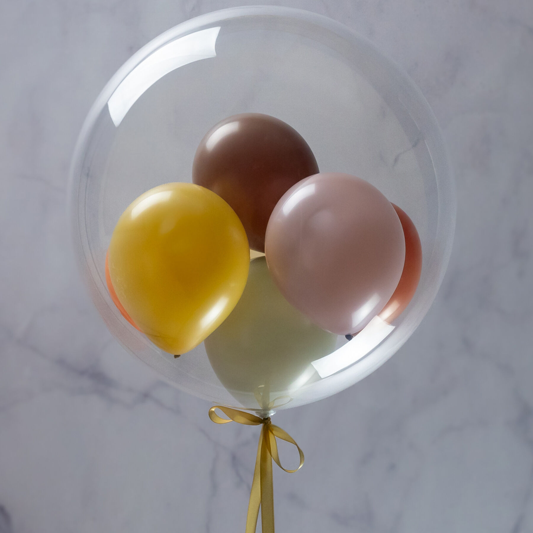 The Personalised Cozy Crunch Balloon-Filled Bubble Balloon from Party On Balloons is a lovely decoration or gift for any special occasions in your life. This bubble balloon features a range of personalisation options, allowing you to add a special message, font and font colour of your choice to really make it your own and so you can create a wonderful impression for a friend or family member you love. Inside the 20″ clear outer balloon, we inflate a selection of small balloons in various autumnal shades to create a lovely effect. On the outside, we can add your own wording or message in a choice of styles and colours. To finish, we add a satin ribbon and matching weight. Balloons ahve a float time of 7-10 days but often longer if kept in a warm space away from sharp objects, inquisitive pets and heat sources.