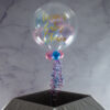Add some dark blue and gold glamour to your next luxurious party, special occasion or lavish event with this personalised balloon-filled bubble balloon. Great for art deco styles or classic party venues, it features a series of unique customisation options so you can add your very own printed message, font and colour scheme to give your balloon gift a truly personal touch. To create this balloon in a box decoration, we inflate a clear 20″ outer balloon and fill it with a series of mini balloons, adding colour coordinating ribbon and a weight to complete the look. Lasting 7 – 10 days on average, this bubble balloon arrives boxed, inflated and ready to open.