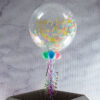 Add a splash of colour to Easter celebrations with this fantastic feather filled bubble balloon, the perfect alternative gift for family and friends, or to decorate your home. We inflate a 20″ clear outer balloon, then fill it with multi coloured feathers. To finish, we add four small balloons to the base, along with a ribbon and weight. On average, these balloons will last between 7 – 10 days.