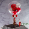 Our Personalised ‘Elf On The Shelf’ Balloon-Filled Bubble Balloon is a magical party decoration for the Christmas season, inspired by the incredibly popular festive tradition. If you need a truly unique elf on the shelf idea, then this balloon-filled bubble balloon comes either by itself or with an elf toy included. Featured in wonderful festive colours, you can also choose to personalise this wintertime decoration with unique wording of your choice, along with a selection of fonts to choose from. We inflate a 20″ outer balloon, printed with the words ‘Special Elf Delivery For’ and the recipient’s name, before filling it with a selection of colourful Christmas balloons. To finish off the look we add coloured ribbon and a weight to match! Lasting 7 – 10 days on average, this bubble balloon arrives in a box, inflated and ready to open for a surprise they’ll never forget. Please Note: There are two options with this balloon – you can choose to include an elf, or purchase the balloon by itself. Please make sure you pick the right option as this cannot be corrected once the order is placed. This balloon can only be personalised with the recipient’s name following the pre-printed wording ‘Special elf delivery for’. The “North Pole” stamp is printed in forest green colour so our image has the name in forest green also.