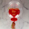 Send a gift to that special someone in your life with a lovely heart-shaped-balloon-filled bubble balloon, personalised with your very own message. Perfect for making a romantic statement on Valentine’s Day, to propose or just to let someone know you love them, this balloon arrives ready to float out the box. Inside the clear outer balloon we inflate several smaller gold balloons in the shape of hearts, adding your message to the outside. To finish, we add small balloons to the bottom, along with matching ribbons and a weight. Lasting 7 – 10 days on average, this bubble balloon arrives boxed, inflated and ready to open.