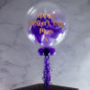 Featuring a striking and completely unique marbelised design, this Personalised Lilac Swirl Balloon-Filled Bubble Balloon is great for adding some flair and colour to Mother’s Day celebrations. Comes with a design that can be fully customised with your own wording with grey and marbelised black & white mini balloons inside the clear outer layer. To create this decoration we inflate a 24″ outer balloon, printed with your own message, and fill it will a selection of lilac, grey and swirl print mini balloons. To finish off the look we add coloured ribbon and a weight to match! Lasting 7 – 10 days on average, this bubble balloon arrives in a box, inflated and ready to open.