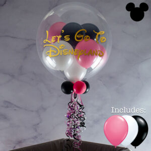 Are you Disney mad? If so you will love our Minnie Mouse-inspired bubble balloon. It’s a lovely gift for a child’s birthday, or why not surprise your kids with a trip to Disney using this balloon? We fill a 20″ clear balloon with 9 small balloons in pink and black, add 4 small balloons around the base, and then add your personalisation in a Disney-style font. This balloon will last 2-3 weeks, you can choose your delivery date at the checkout and wait for the ‘wow’ when it is delivered!