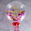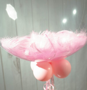 This personalised pink feather bubble balloon is the perfect gift for a special occasion, or can be used as a decoration for weddings, birthdays and other events. Our 20″ clear balloon is filled with fluffy pink feathers and then inflated with helium, helping it last between 7 – 10 days. You can then choose to personalise the balloon with your own message, and choose the font and colour. Our balloons are finished with four matching smaller balloons to the base, plus a weight and ribbons.