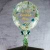 Add dark pinks, light pinks and a splash of rose gold colour to your personalised balloon-filled bubble balloon Mother’s Day decoration or gift! Perfect for customising with a special message, font and colour scheme, this is a wonderful statement piece or surprise for Mum. To make this lovely balloon in a box decoration, we inflate a 20″ outer balloon and fill it with a series of miniature balloons, completing the look with colourful ribbons and a weight to keep your balloon anchored to the floor. Lasting 7 – 10 days on average, this bubble balloon arrives boxed, inflated and ready to open.