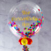 This beautiful confetti filled bubble balloon is perfect as a gift for any special occasion, or use them to decorate a big party or magical event. This design is filled with rose gold and pink confetti, and then the clear 20″ balloon is inflated with helium. You can choose to add a message to the outside of the balloon, along with the font and colour it’s in. To finish we add four smaller balloons at the base, and matching ribbons and a weight. Each balloon is sent using a next day delivery service, and will last, on average, 2 – 4 weeks.
