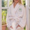 Wrap yourself in ultimate warmth and floral style with our sherpa-lined polyester dressing gown, embroidered with your choice of flower on the front left chest.