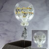 Decorate your house for Halloween with this spooky skeleton multi fill bubble balloon. We inflate a clear outer balloon then fill it with a mix of smaller balloons, including plain black and white balloons with skeleton faces on them. A scary balloon that will last for much longer than Halloween, we can also add a personalised message to the outside. It’s finished with four smaller balloons at the base, along with matching ribbon. Please Note: All wording will be in our special ‘Halloween-style’ font.